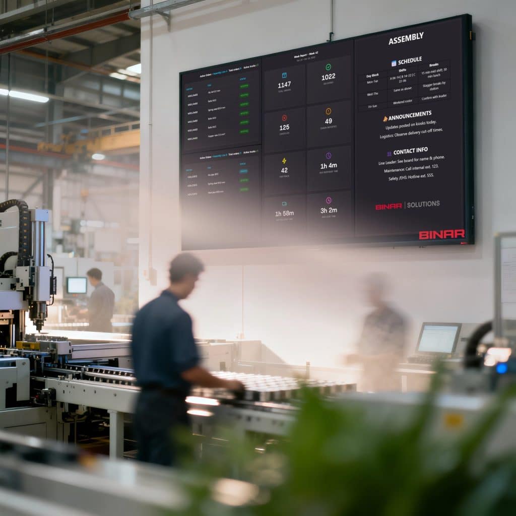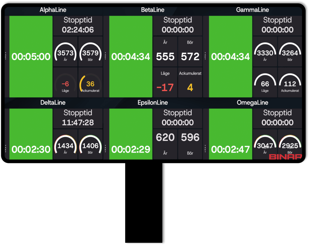 By visualising production flow through dashboards or traditional LED displays, waste becomes visible and bottlenecks are easier to identify.